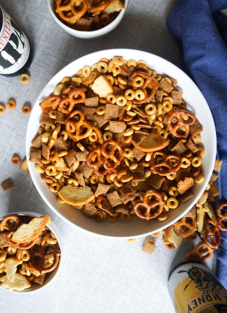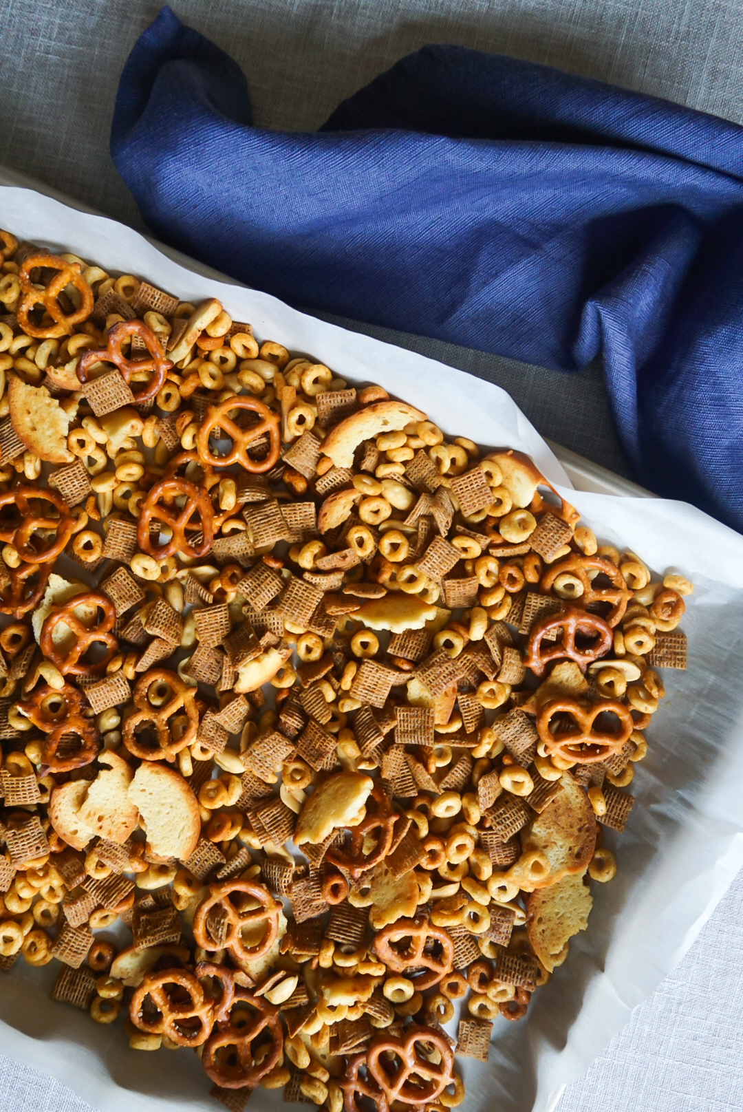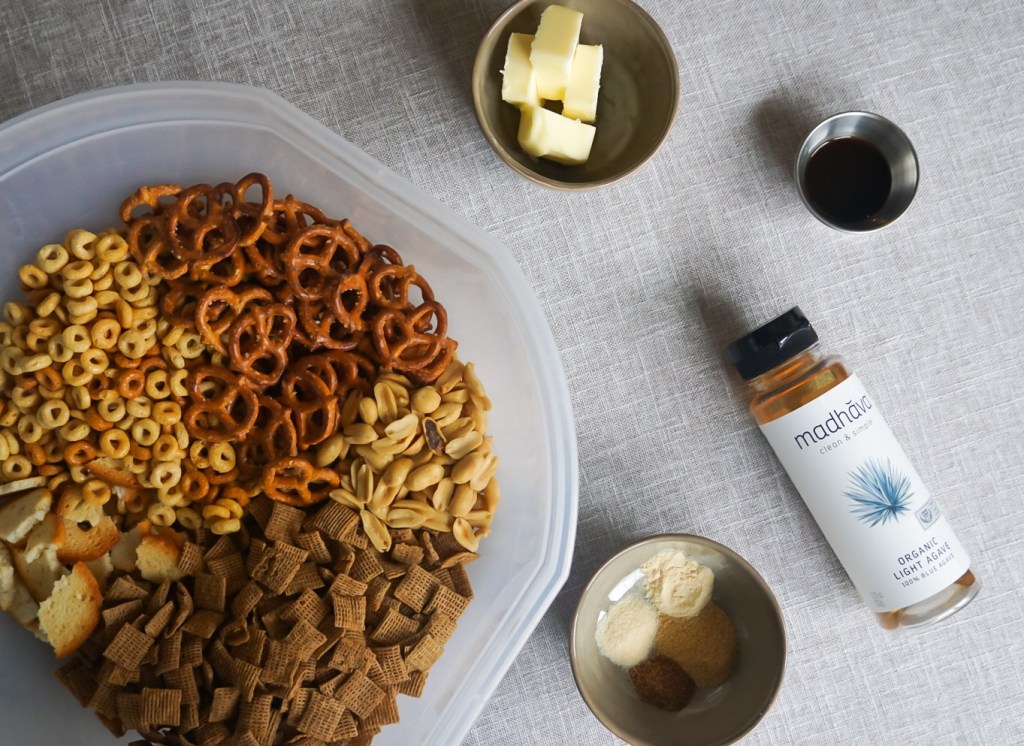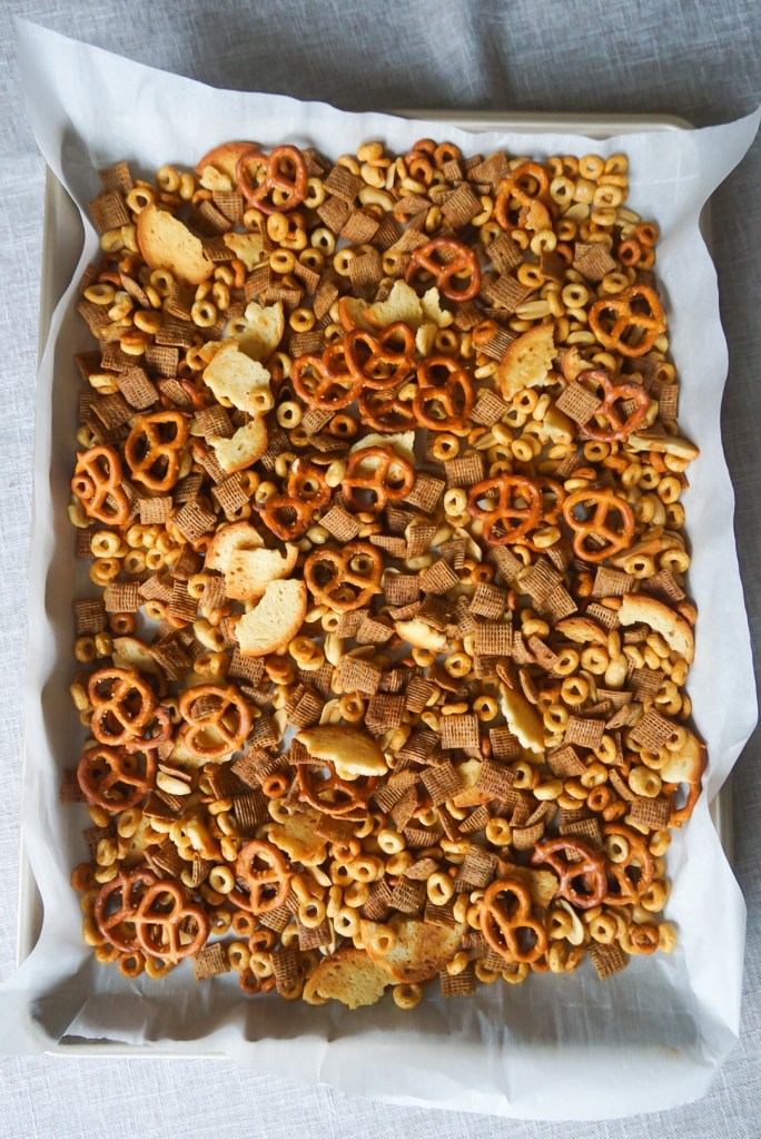 I feel like the hint of sweetness mixed with all the saltiness is what makes this snack delicious. Besides the traditional Worcestershire sauce, garlic powder, onion powder and butter, here is everything else I added to give it that dash of sweet and salty.